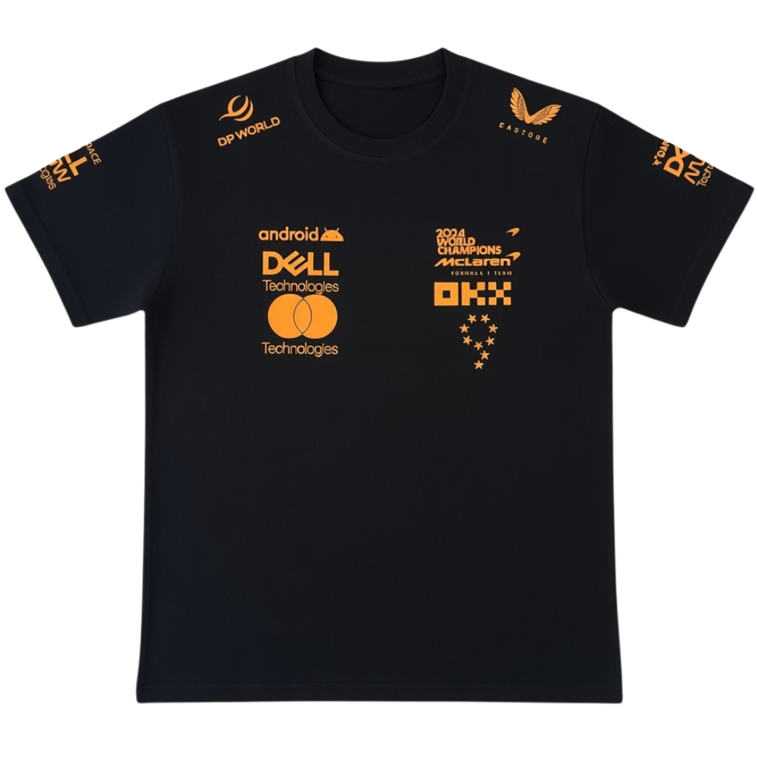 Футболка McLaren 2024WC — в честь перемоги в 2024 році. Стильний мерч, що поєднує інноваційний дизайн команди McLaren з актуальними трендами. Ідеально підходить для підтримки улюблених пілотів на трасі та в повсякденному житті